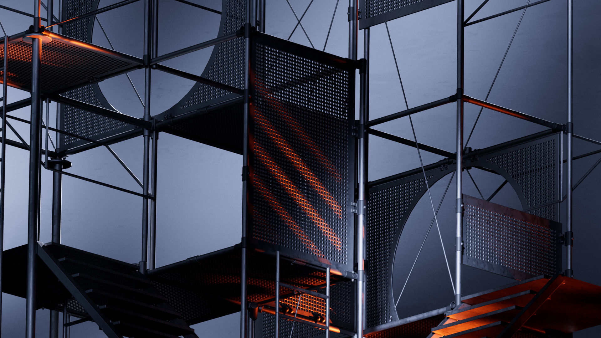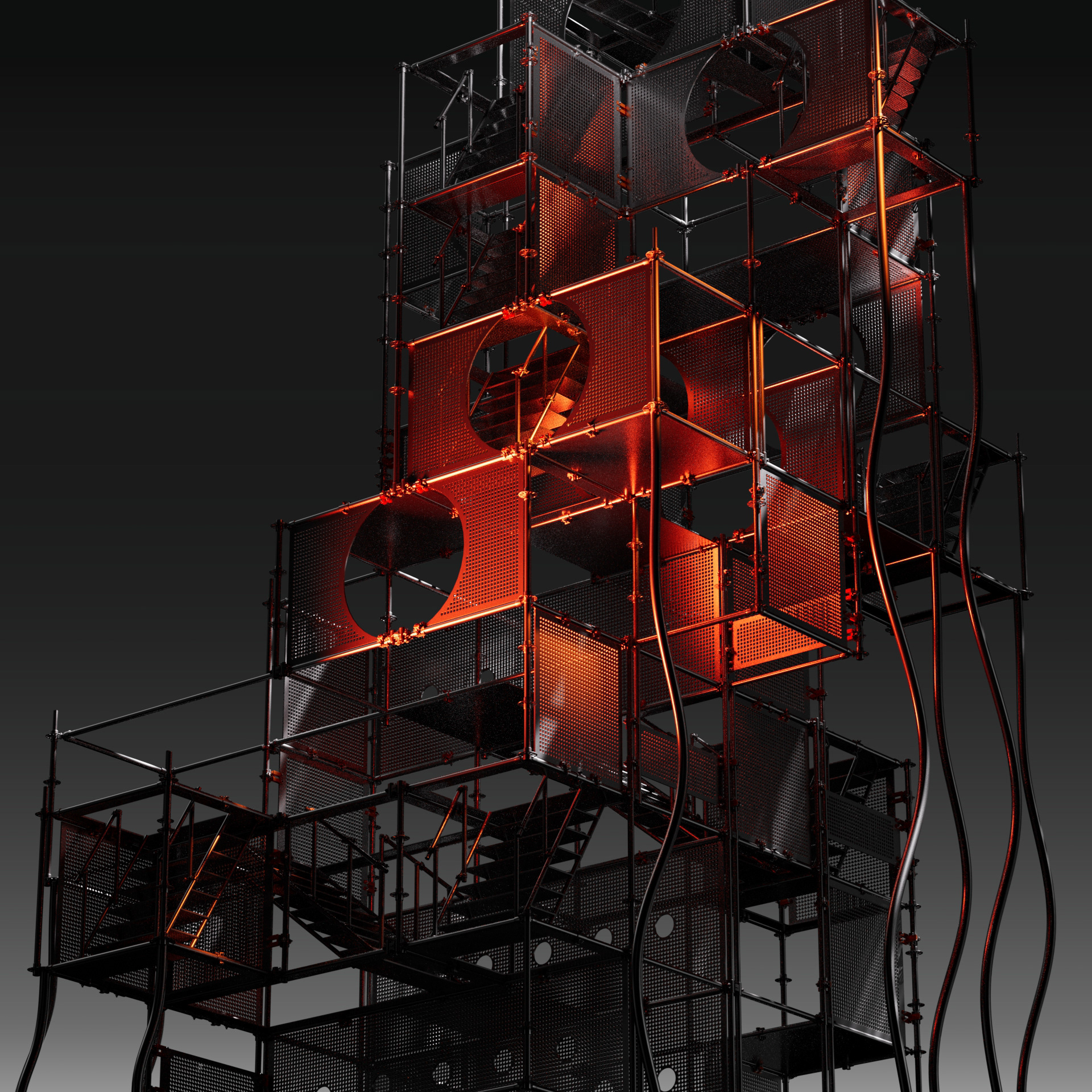 When I started the project, I explored many different creative approaches to find the right look.I also had a lot of fun experimenting with procedural scaffolding, textures, and lighting.