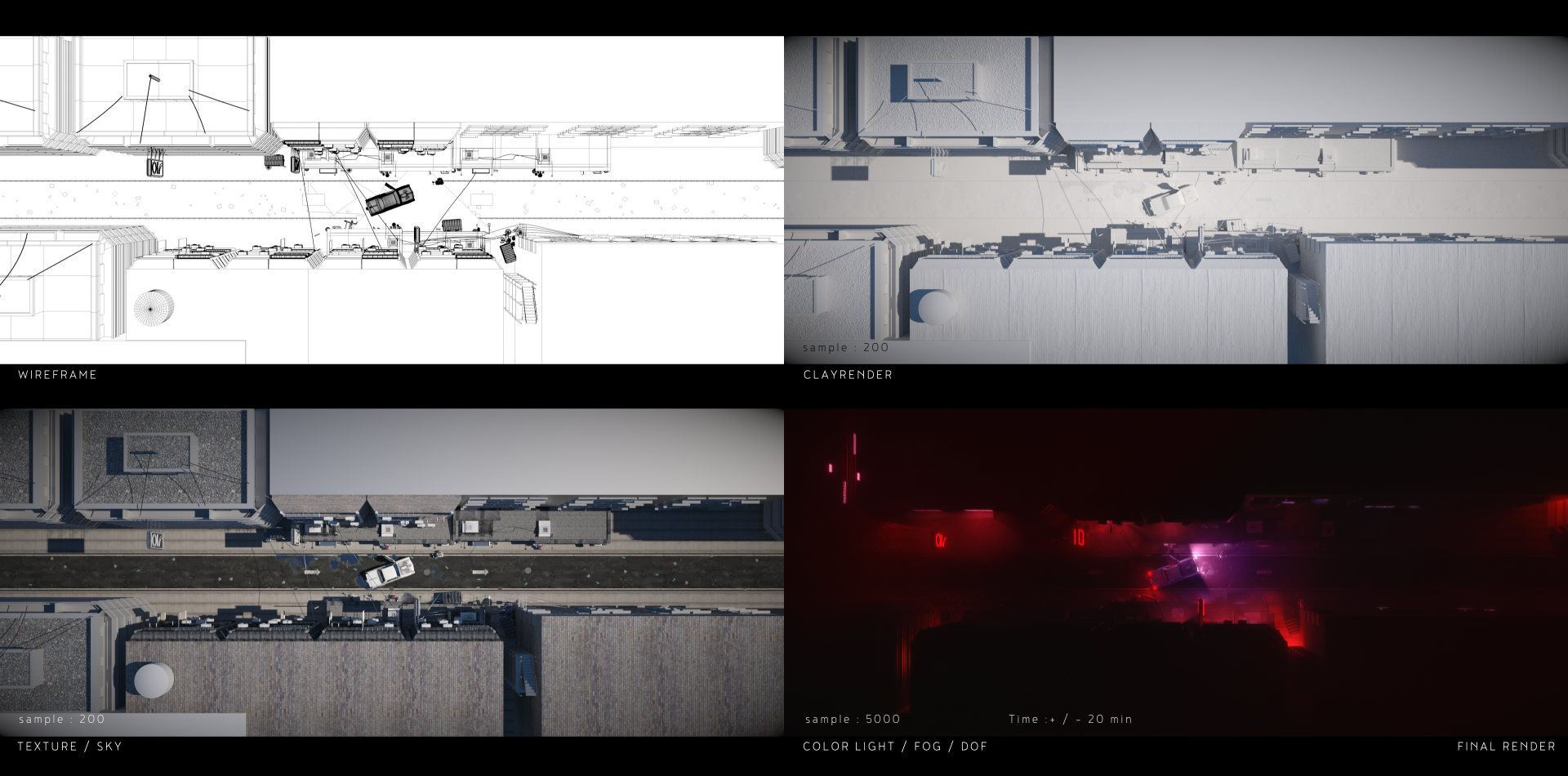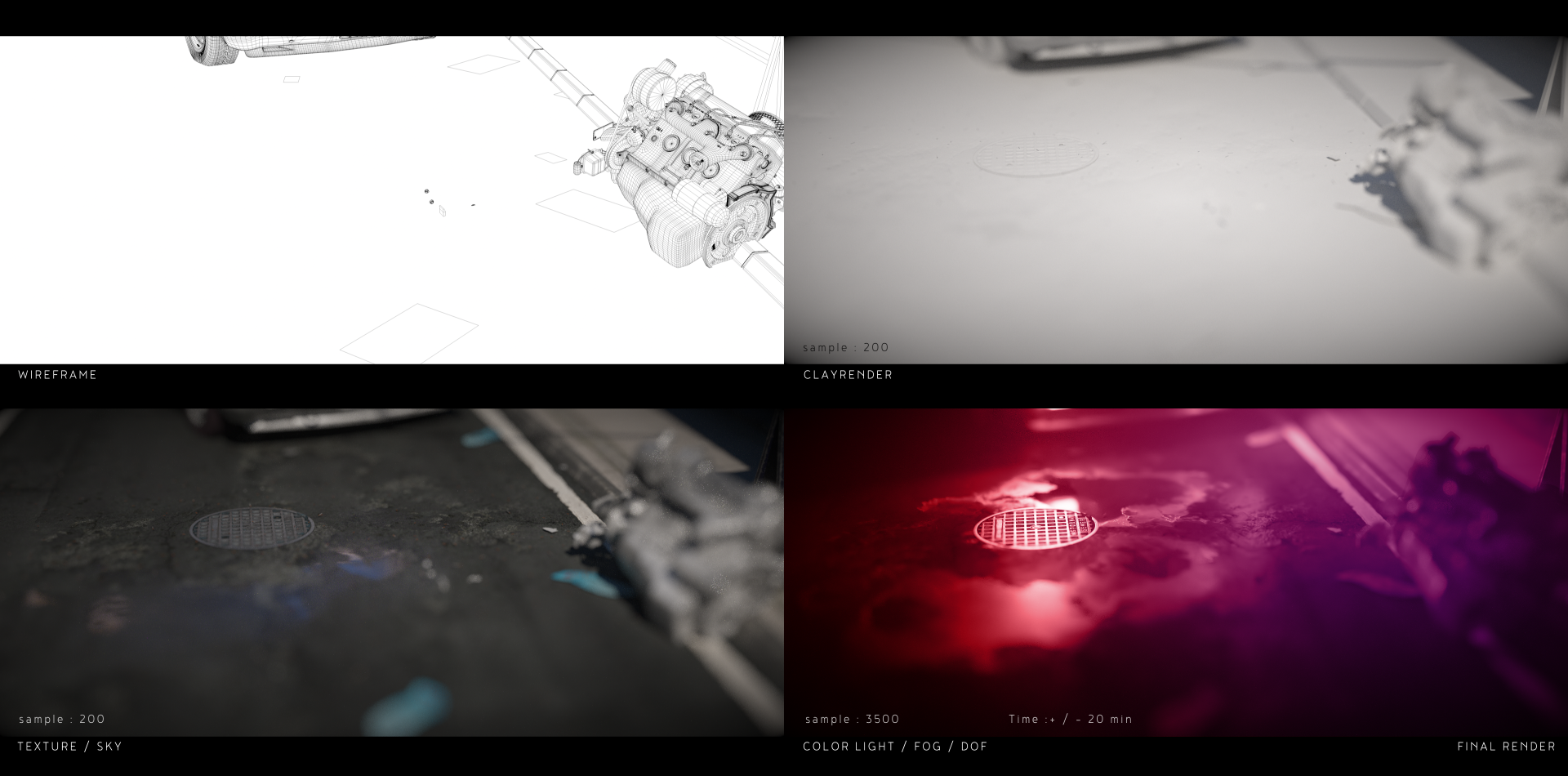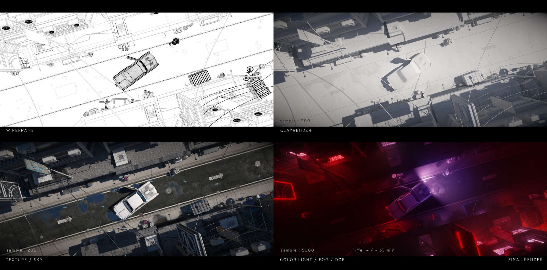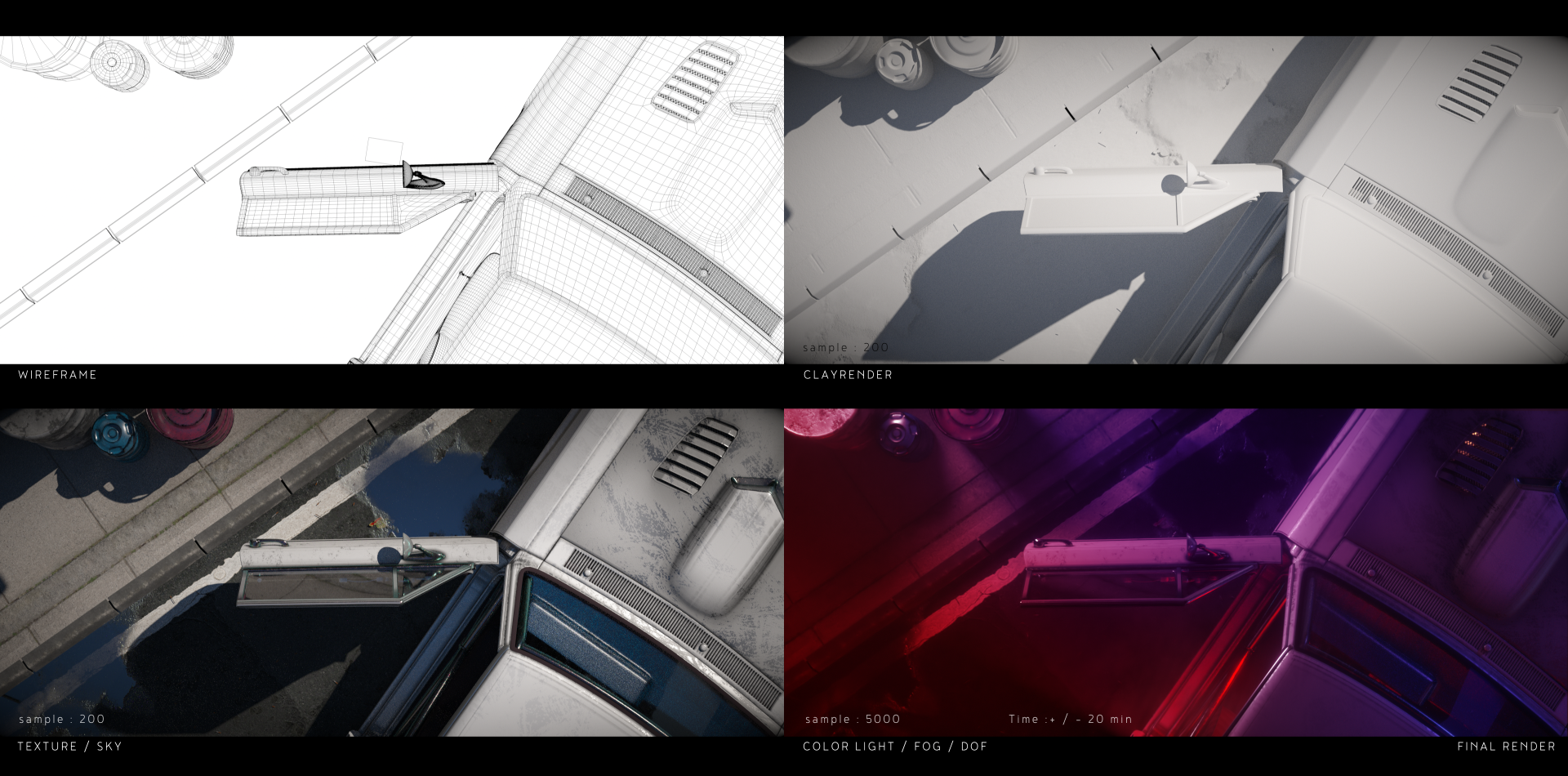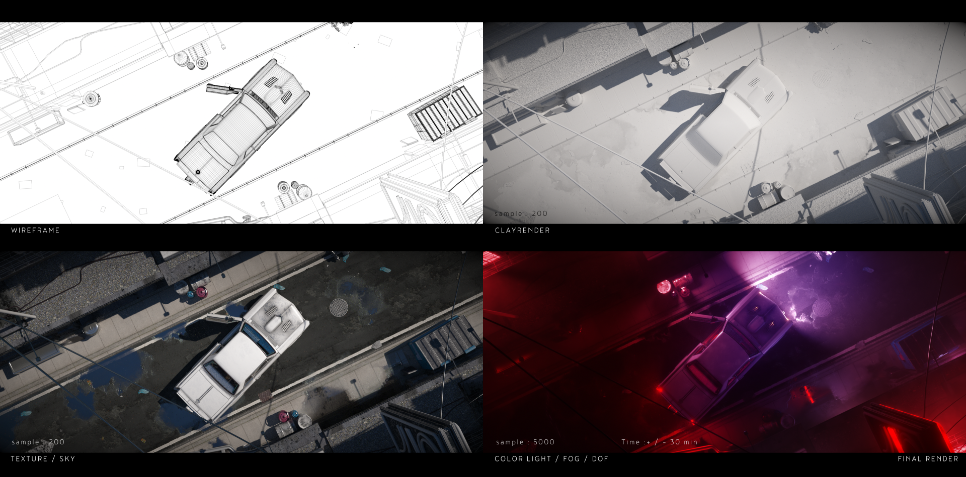 Except the car I made all the modeling, texturing and lighting.