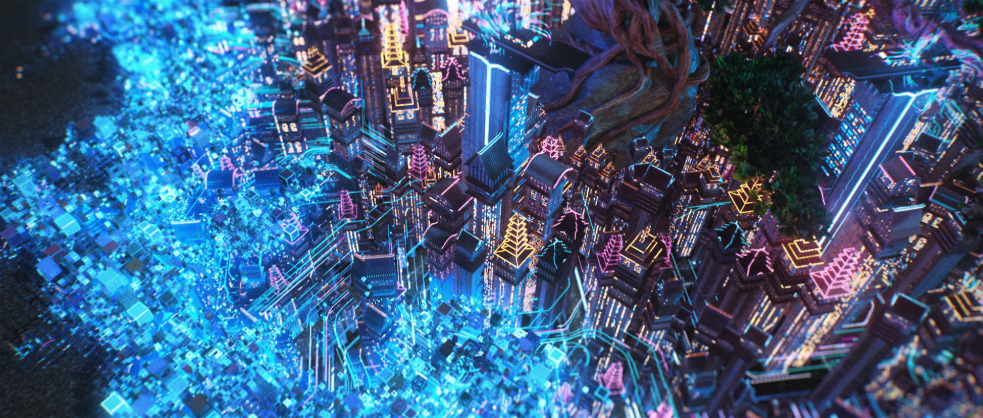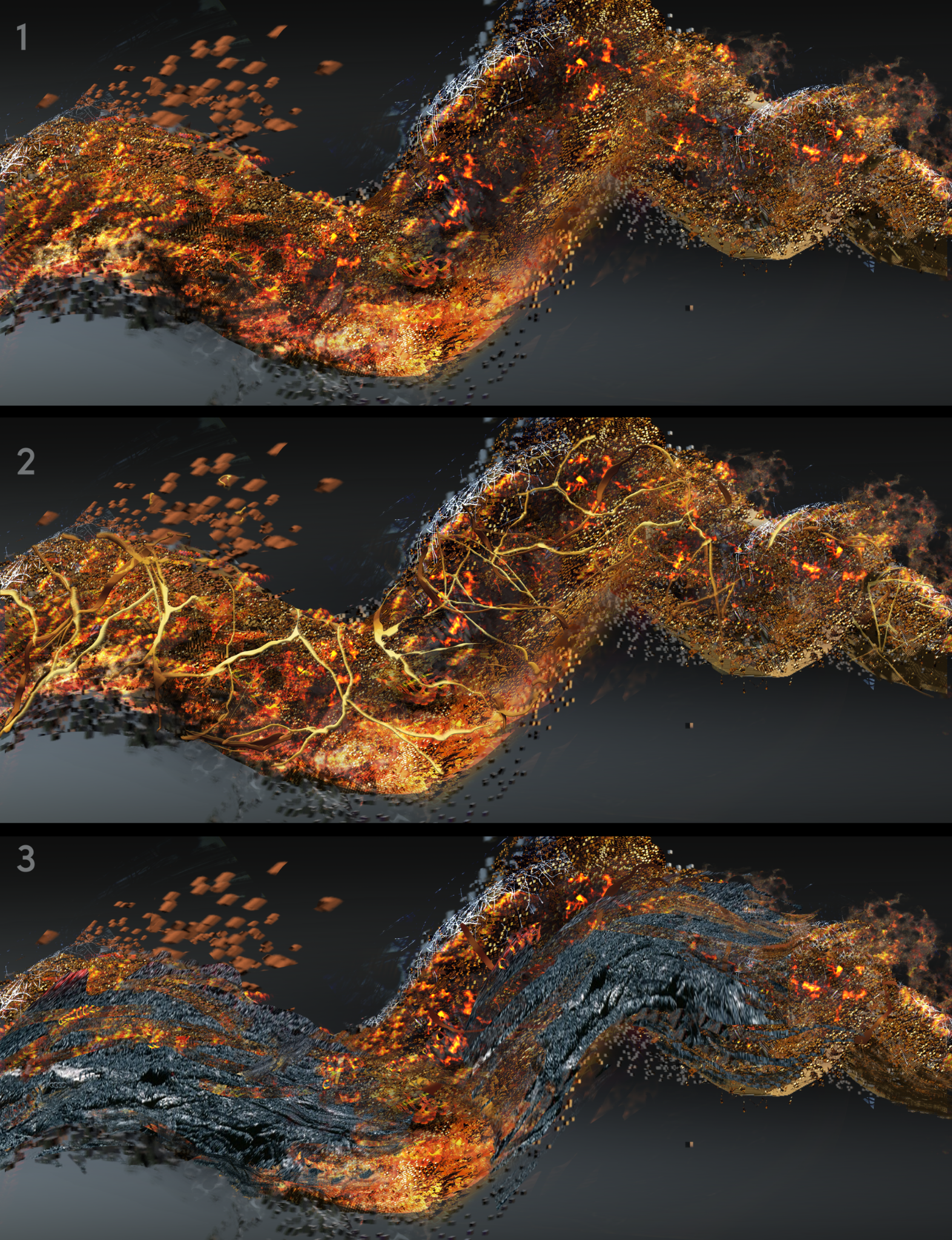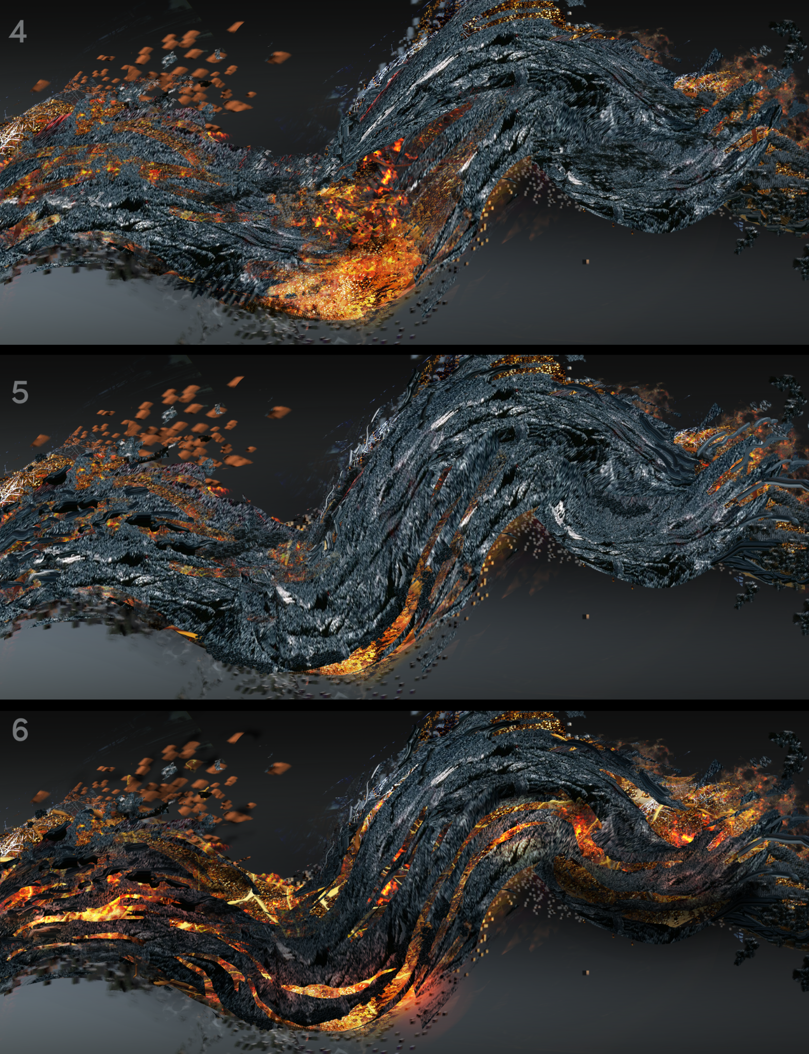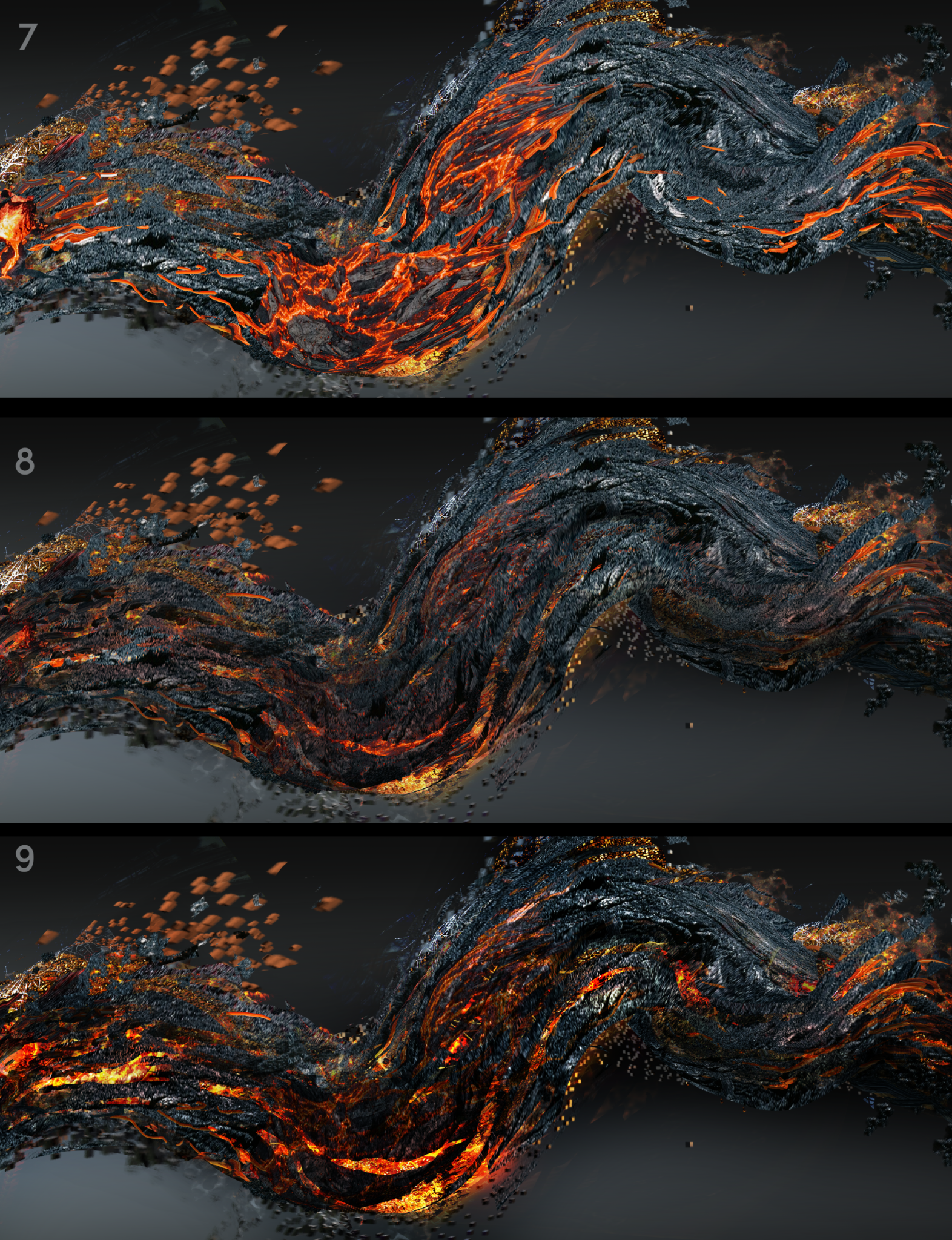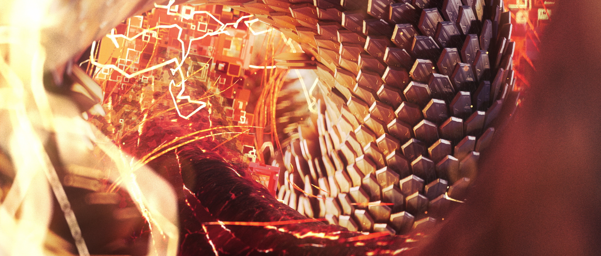 This visual concept, taken from the story and represented by a 3D glitch effect, could be a very interesting graphic medium to create varied dynamic transitions between the different 3D scenes of the film.