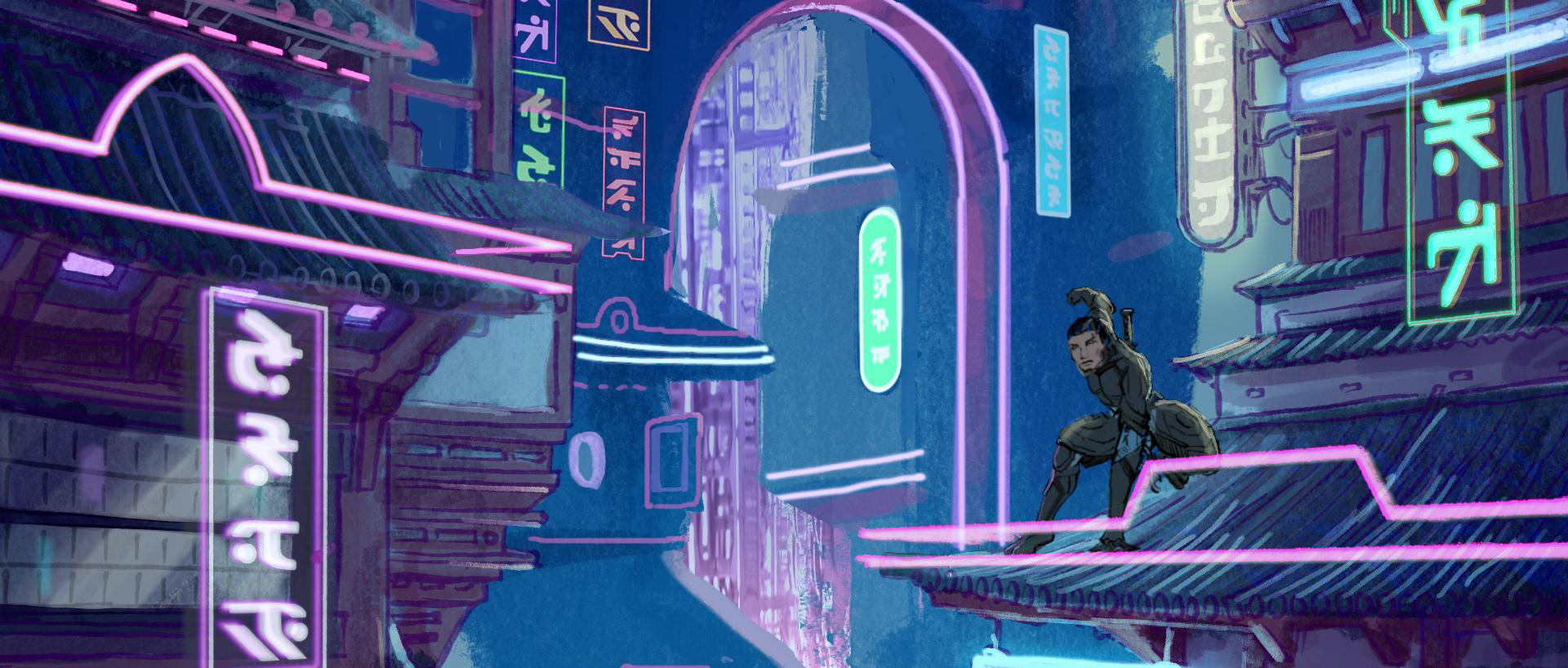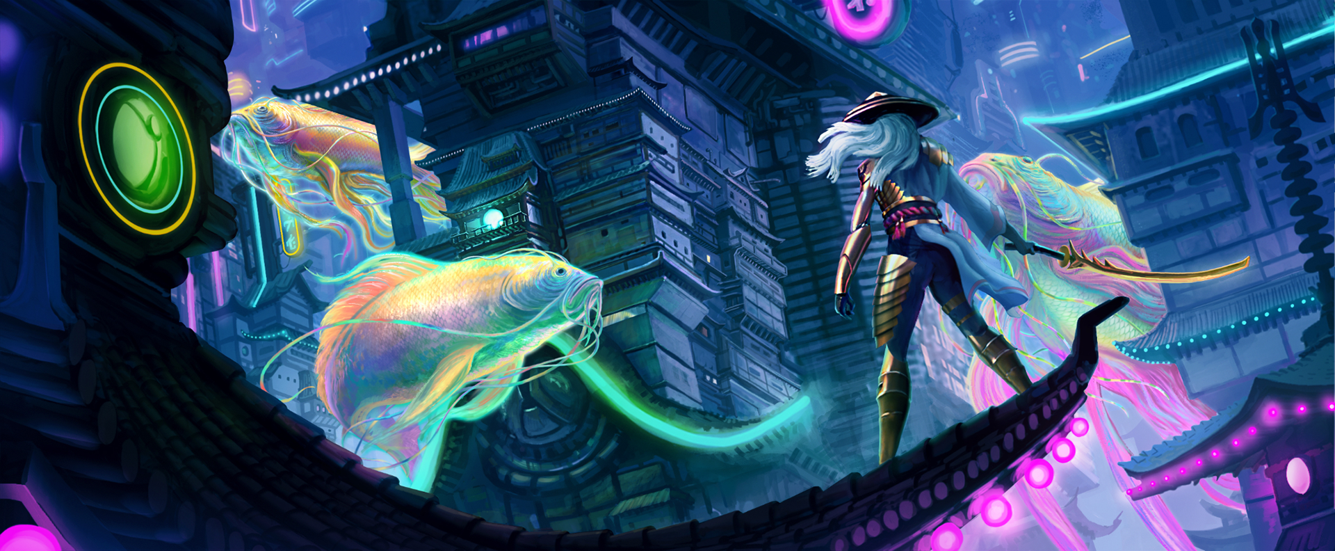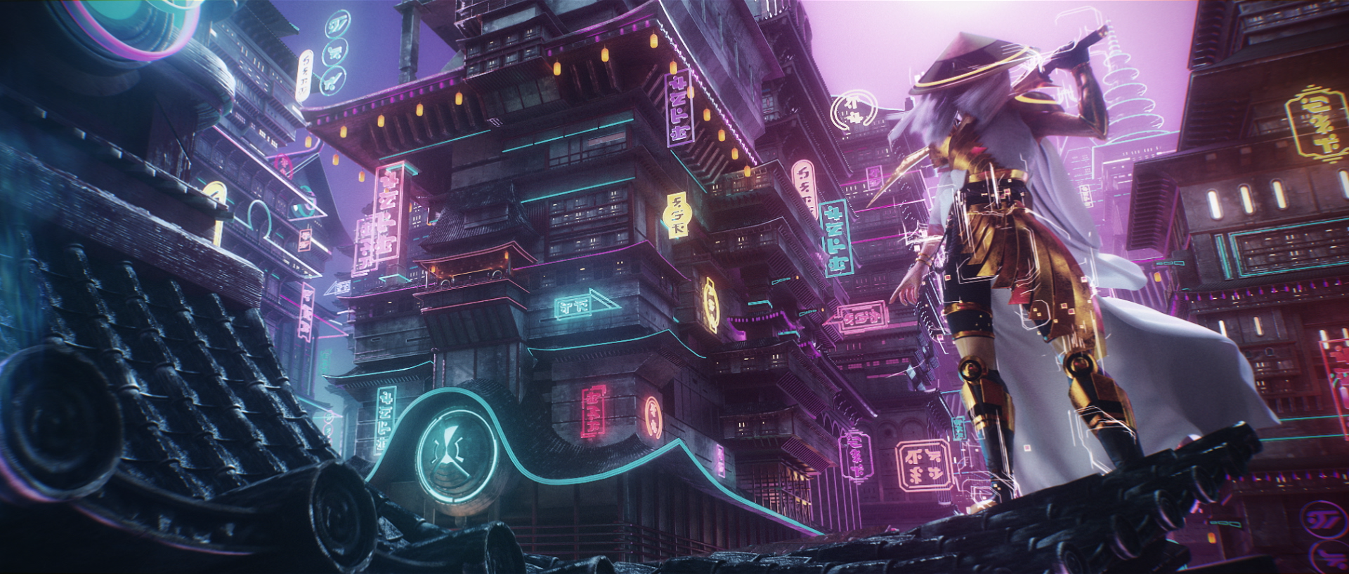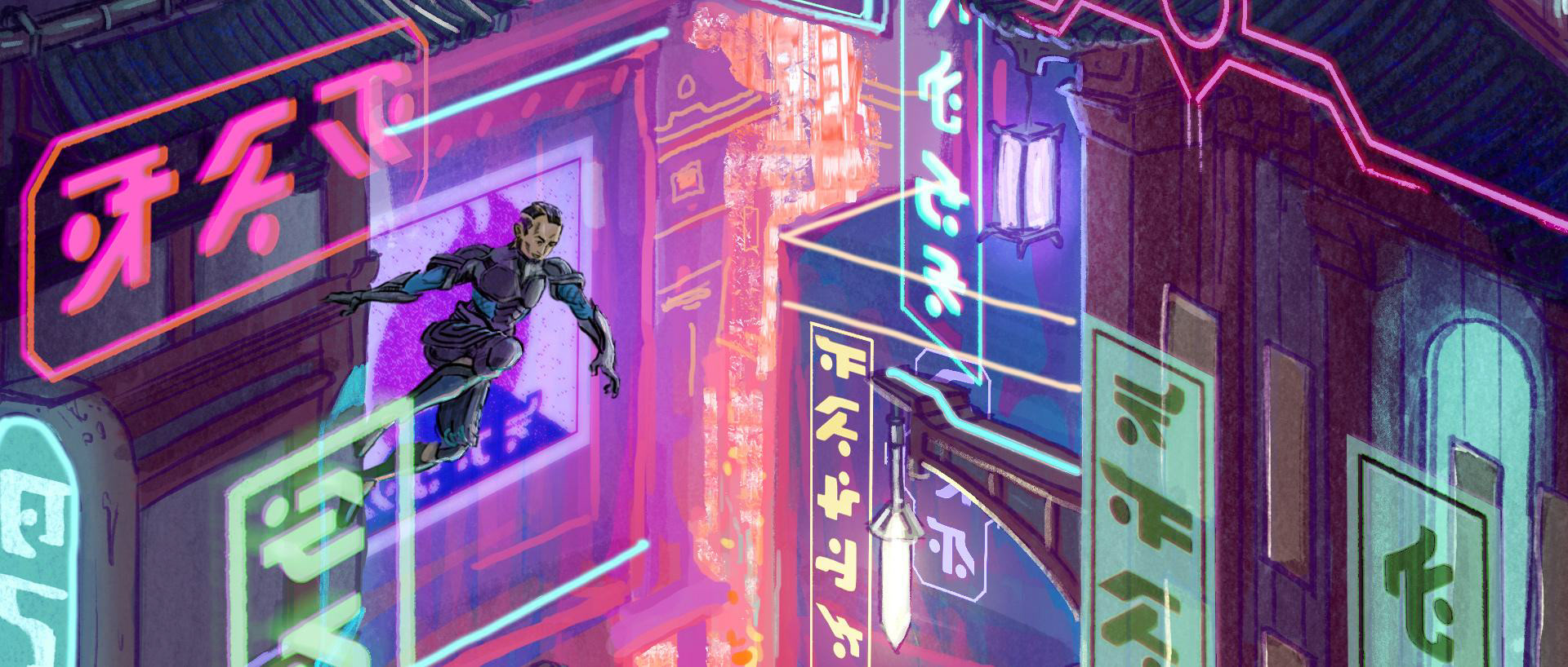 Our goal is to propel the spectator into the colorful futuristic world of Neon Dynasty with a graphic and dynamic motion design trailer that will introduce many aspects of this sci-fi universe that is totally new for Magic players.