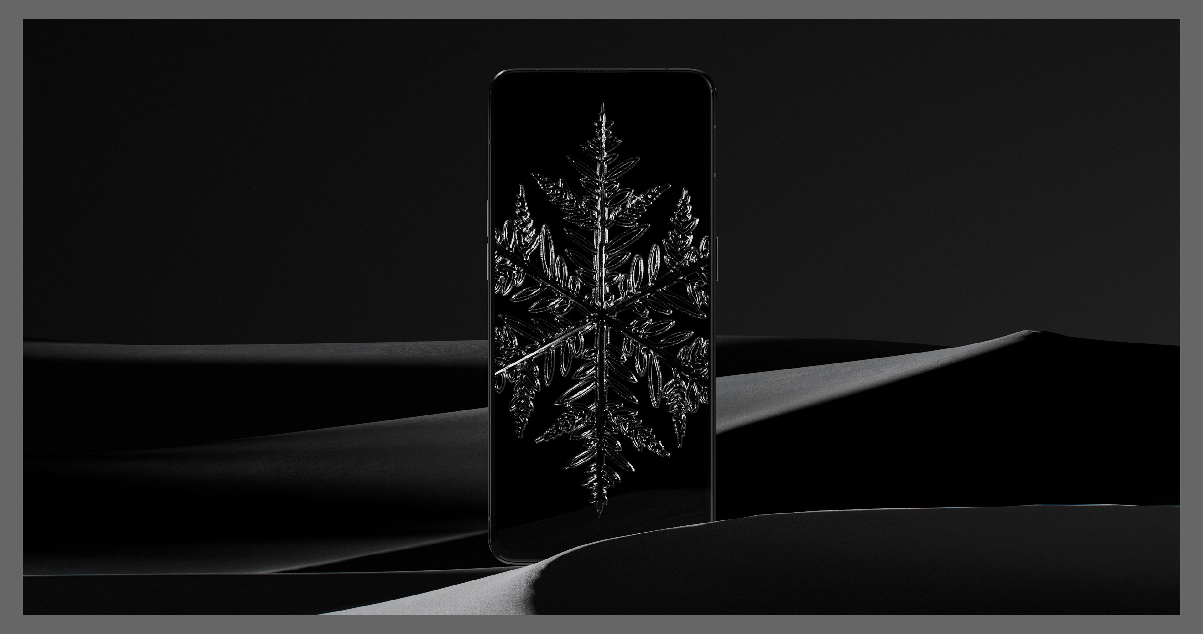For the Jin series, we looked to nature for inspiration. The idea of snowflakes, crystals and snow forming the phone’s surface was the key concept for our visuals. The environment was kept minimal to maintain the focus on the premium phones.