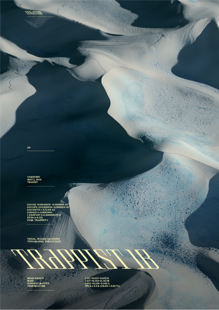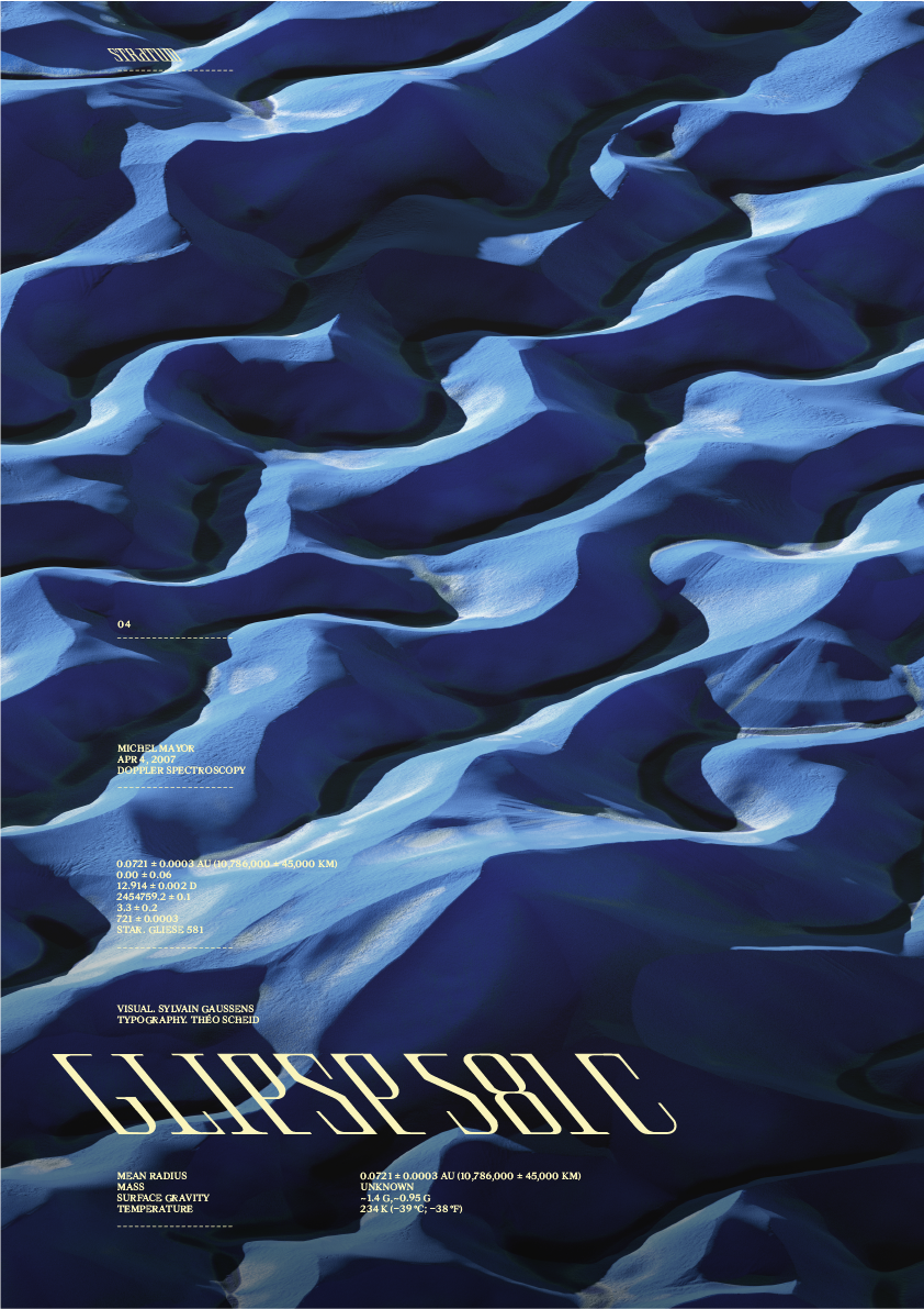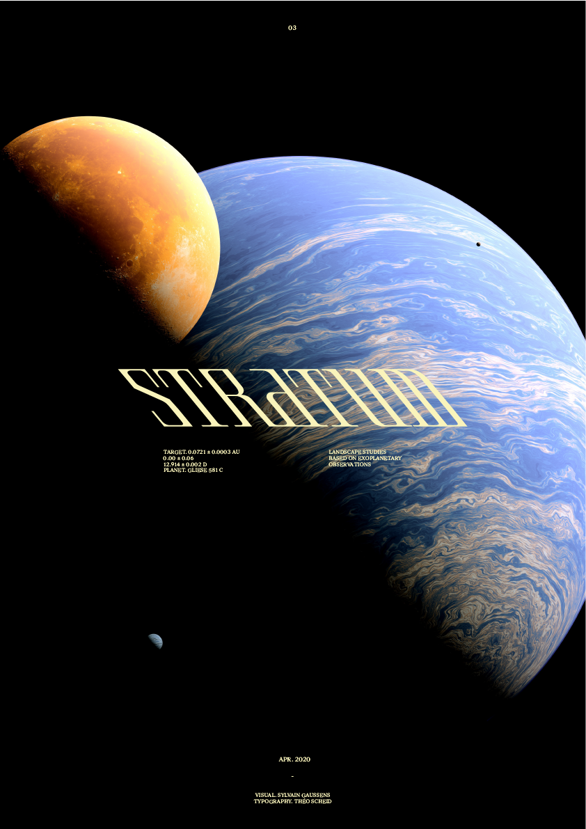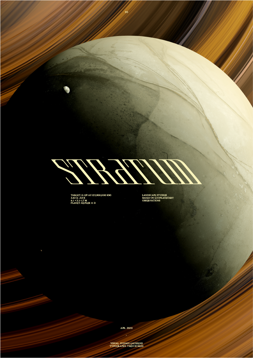 Usually apply to geology, astronomy and physics, we played with this definition in order to create a fantasmagoric vision of exoplanets.