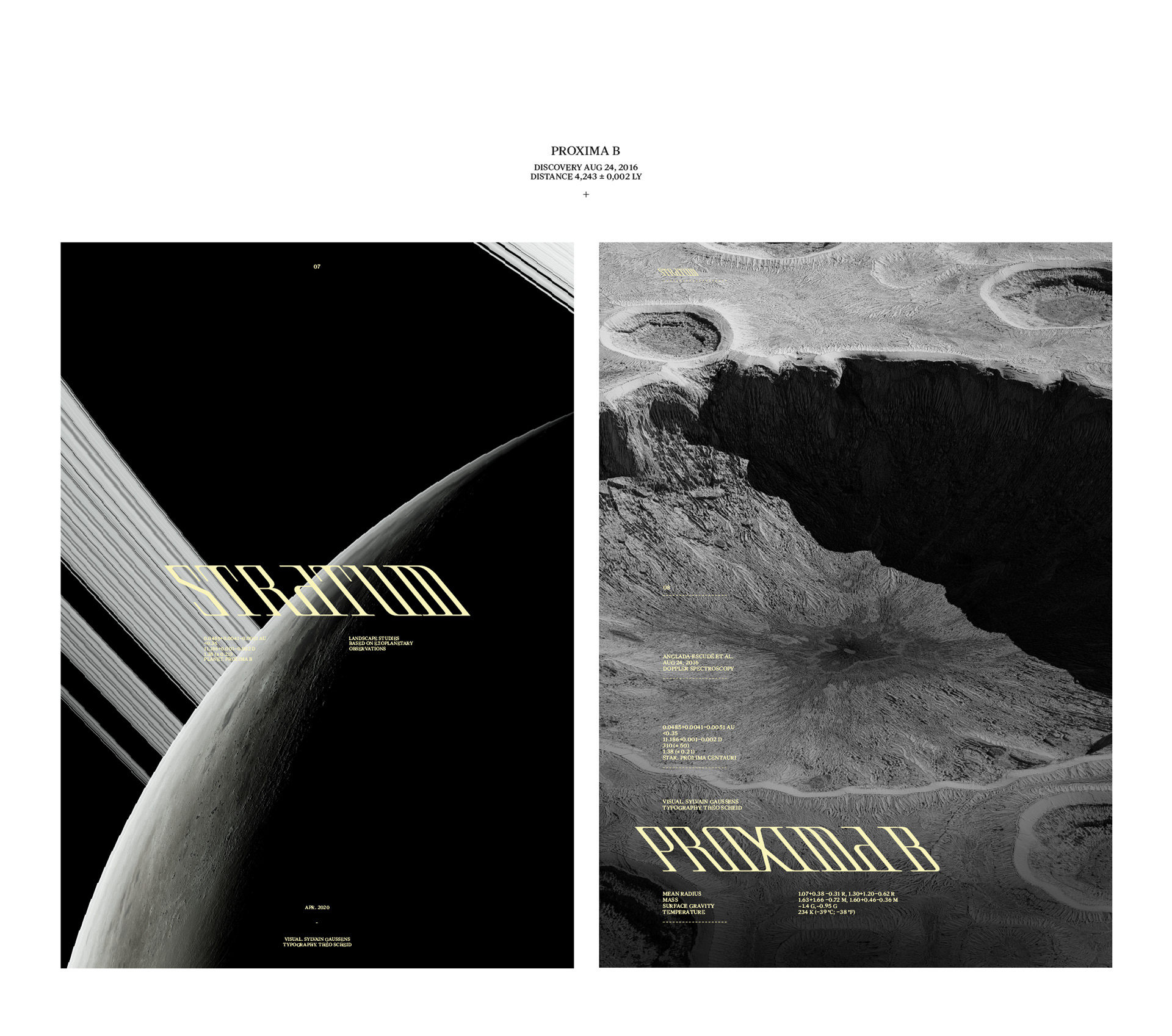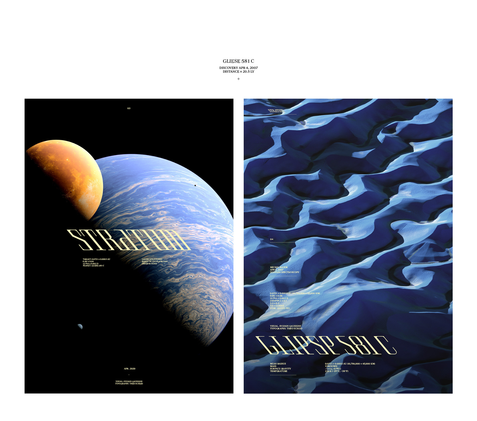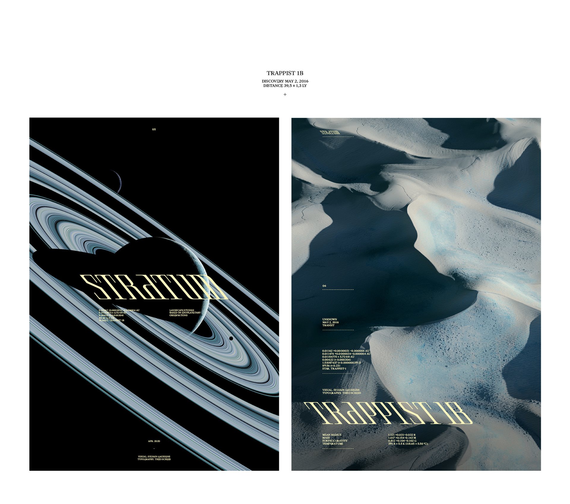 Usually apply to geology, astronomy and physics, we played with this definition in order to create a fantasmagoric vision of exoplanets.