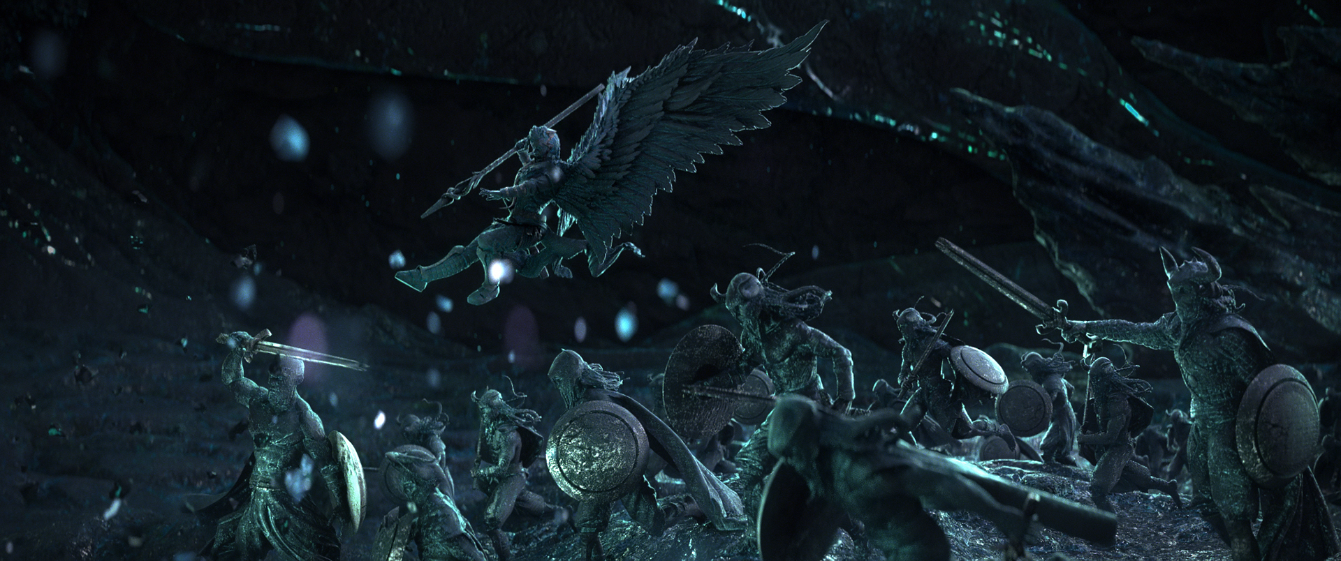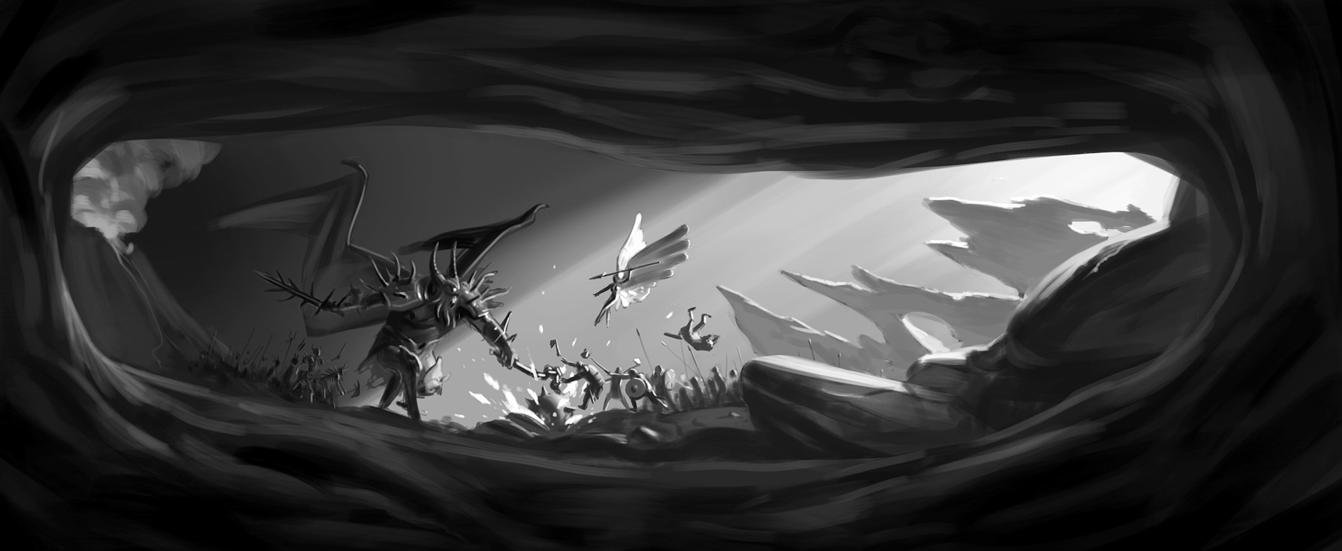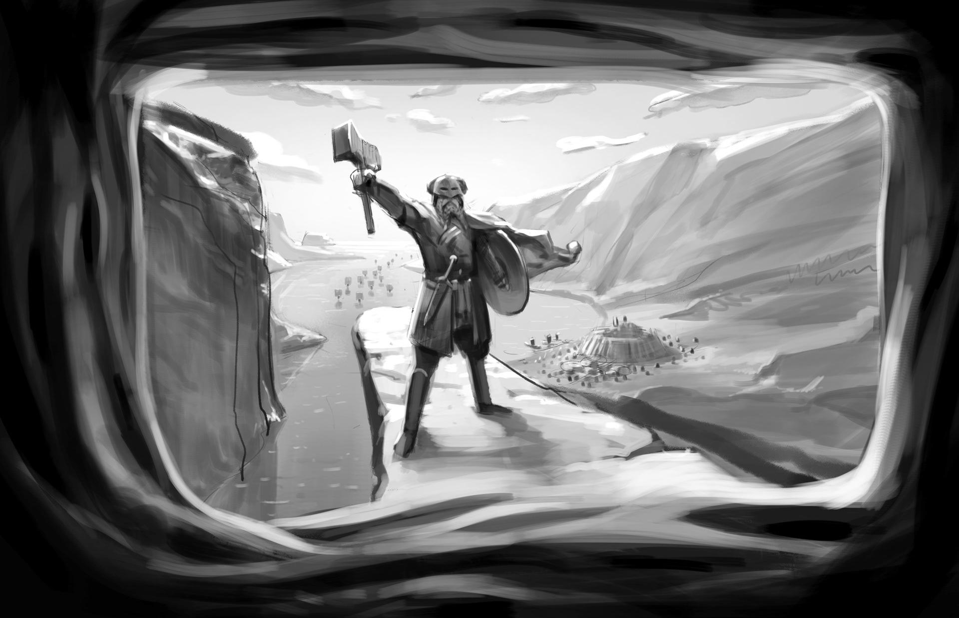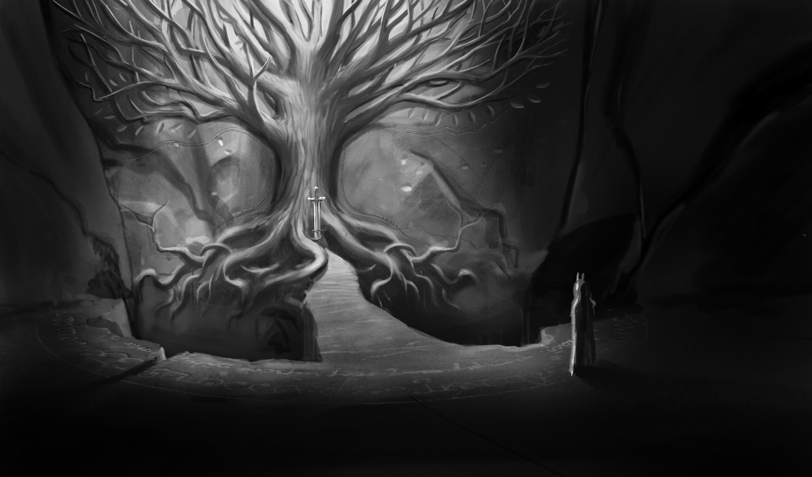 Once our story is told, it appears in its entirety by forming a large engraved fresco at the center of which we find “the Sword of the Realms.”